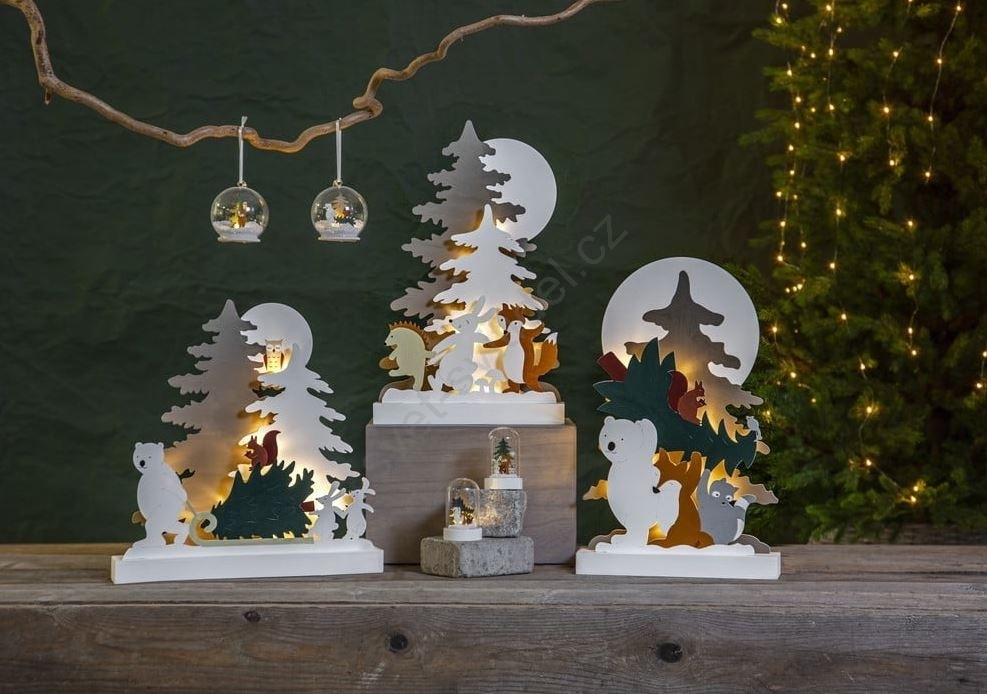 • Sada 2x LED vánoční dekorace z laserem řezaného dřeva.