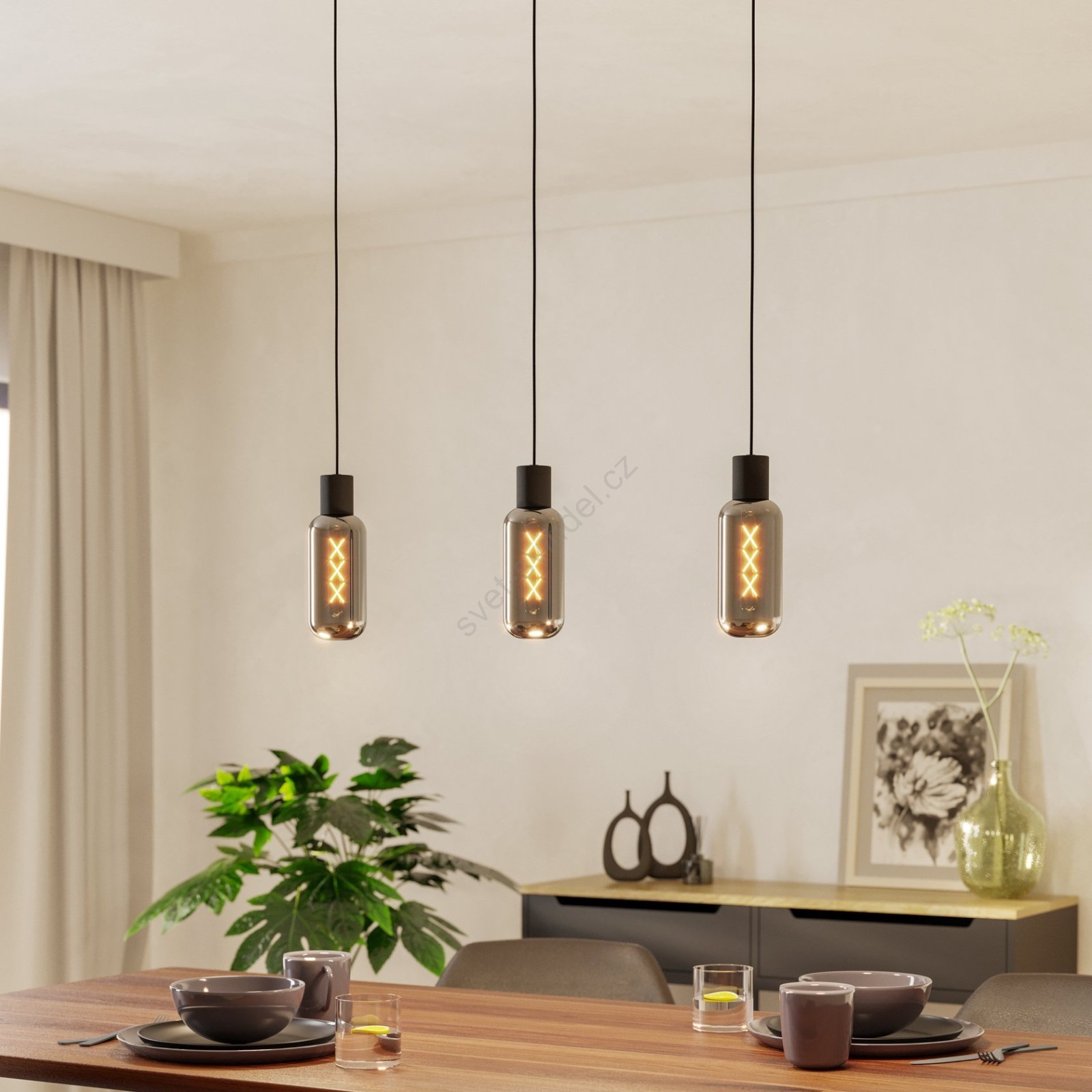Eglo - Lustr na lanku 3xE27/4W/230V černá/kouřová charakterizuje pěkný design a funkční provedení. Do svítidla je určena žárovka s paticí E27. Zde si můžete koupit další žárovky za výhodnou cenu. Získáte tak zajímavý doplněk do svého domova.