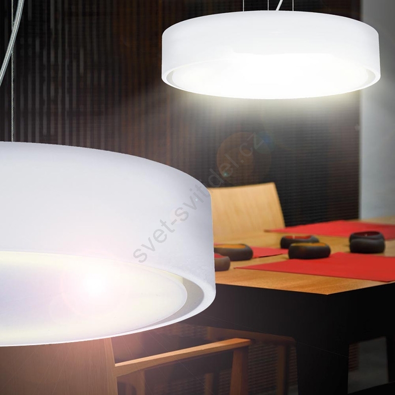 • Moderní úsporný závěsný lustr v bílém provedení.