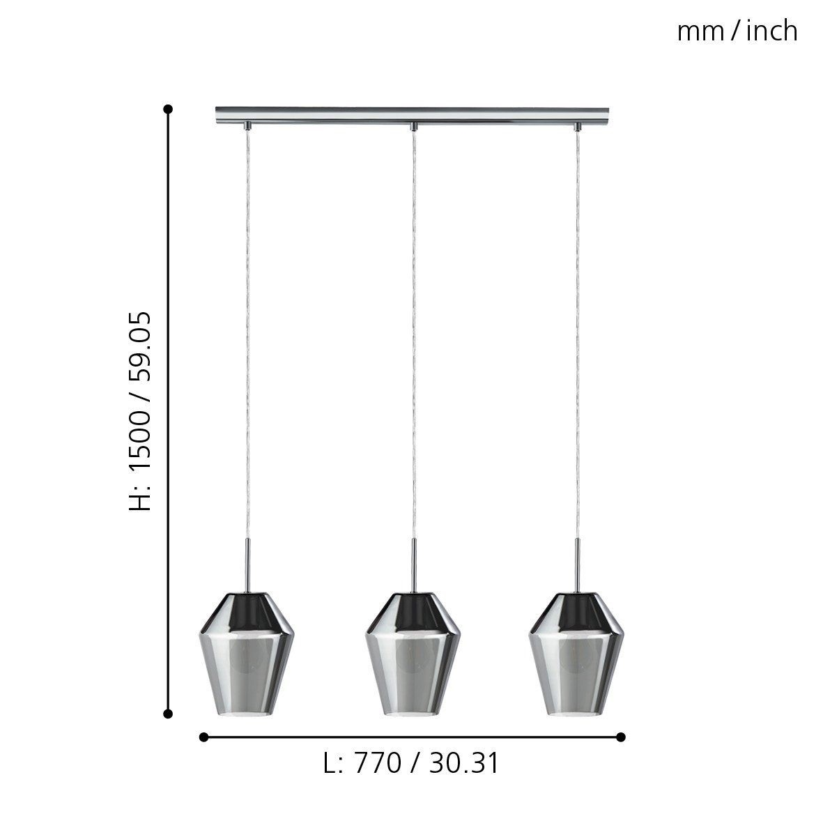 Eglo 96774 - Lustr na lanku MURMILLO 3xE27/28W/230V