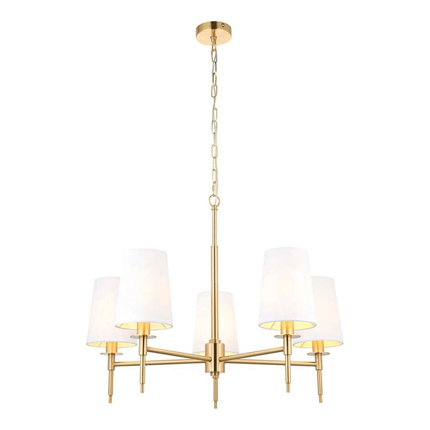 Endon 99458 - Lustr na řetězu 5xE14/6W/230V zlatá/bílá charakterizuje pěkný design a funkční provedení. Do svítidla je určena žárovka s paticí E14. Zde si můžete koupit další žárovky za výhodnou cenu. Získáte tak zajímavý doplněk do svého domova.