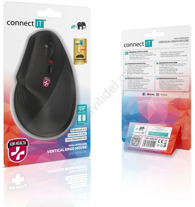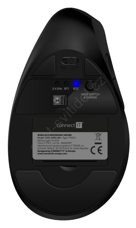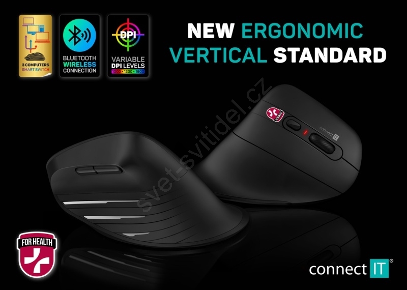 CONNECT IT CMO-2880-BK - Ergonomická bezdrátová myš Verti TriMode 1000/1600/2400 DPI 2xAAA černá