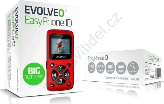 Evolveo - EasyPhone ID, mobilní telefon pro seniory červená