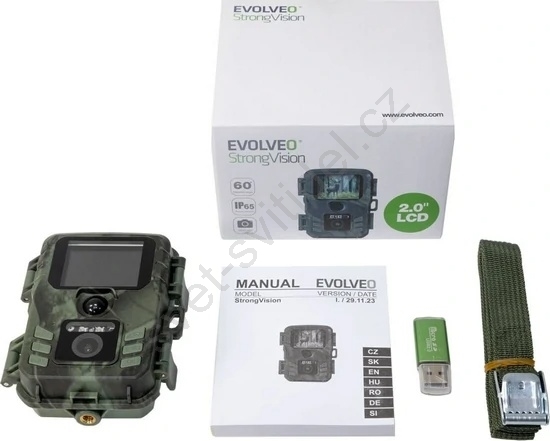 • Obsah balení: Fotopast StrongVision MINI Wi-Fi, Upevňovací pásek, Čtečka SD karet, Uživatelský manuál.