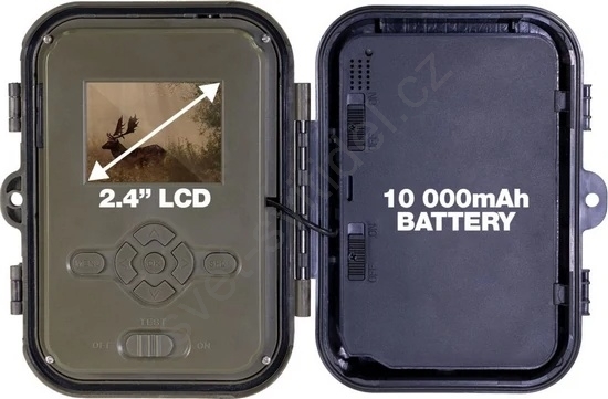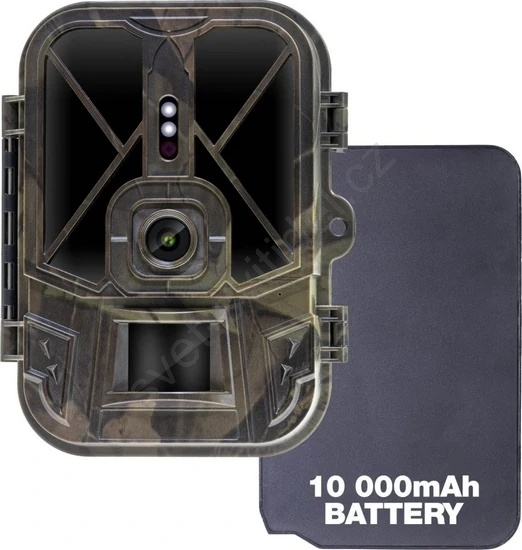 • Obsah balení: Fotopast, Li-Ion baterie, napájecí adaptér, upevňovací pásek, čtečka SD karet a návod.