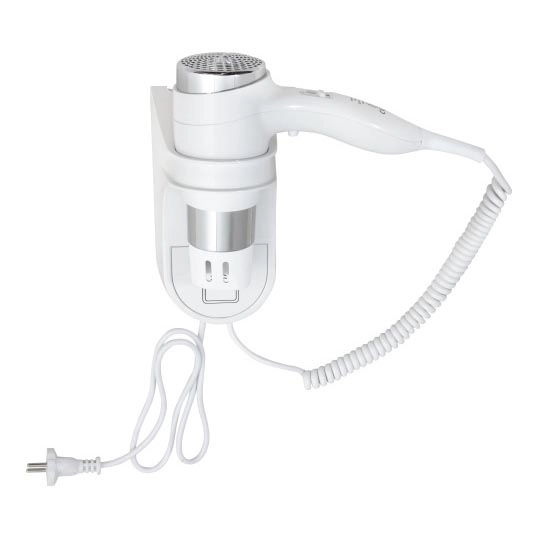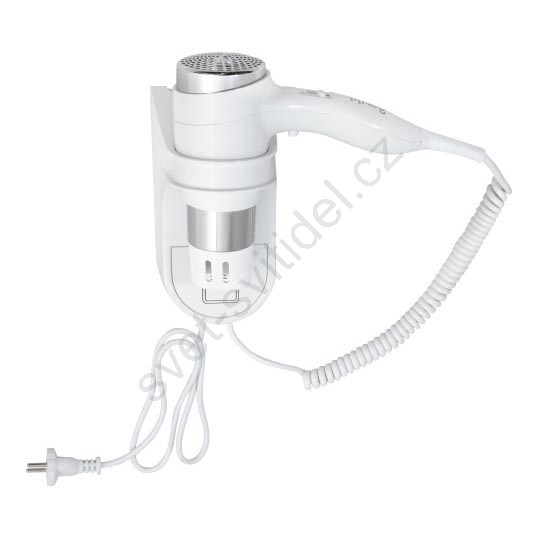• Elegantní bílý fén s nástěnným držákem pro úsporu místa.