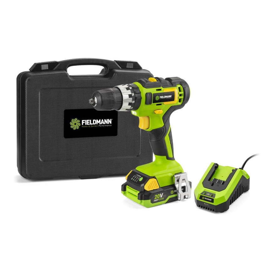 Fieldmann - Akumulátorová vrtačka 2000 mAh 20V + rychlonabíjecí stanice