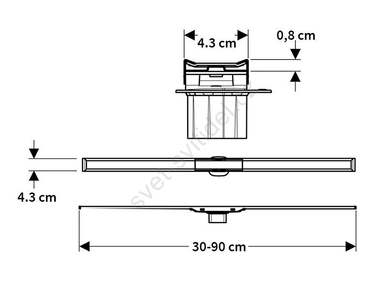 • Sprchový kanálek s délkou 90 cm je vyroben z nerezové oceli.