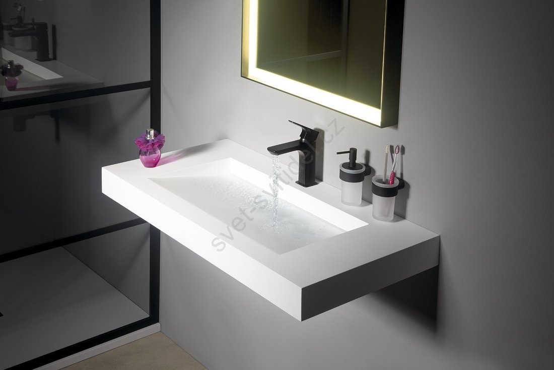 • Minimalistický design kombinující mléčné sklo a kov.