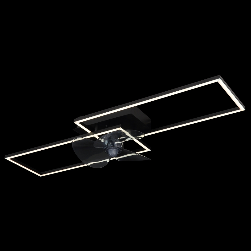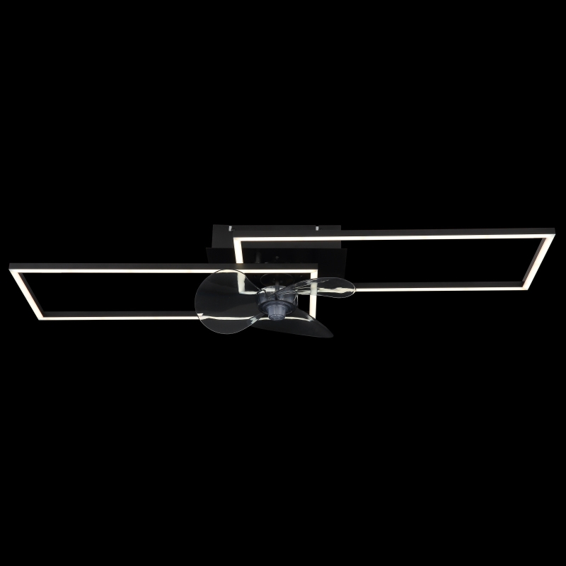 • Designový stropní ventilátor v matné černé s opálovými prvky.