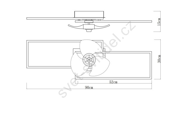 • Ventilátor disponuje 6 rychlostmi, funkcí zpětného chodu pro zimní režim, dálkovým ovládáním a stmíváním.