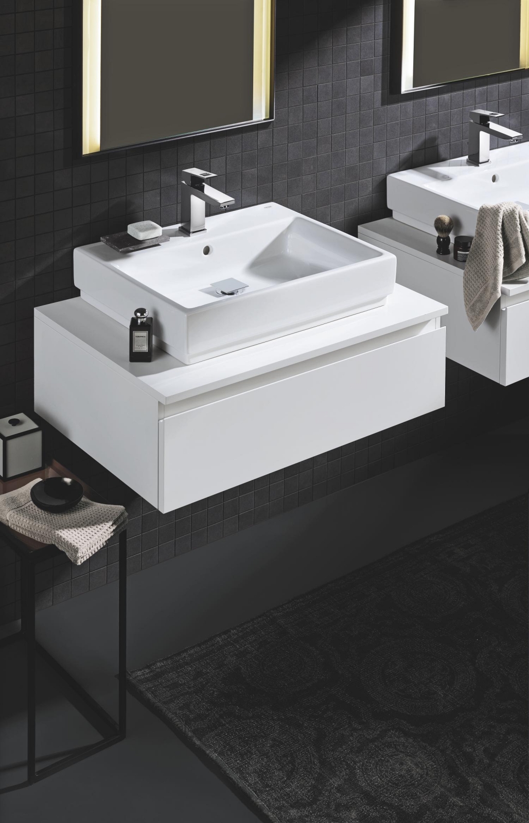 • Moderní páková umyvadlová baterie GROHE Eurocube s elegantním hranatým designem.