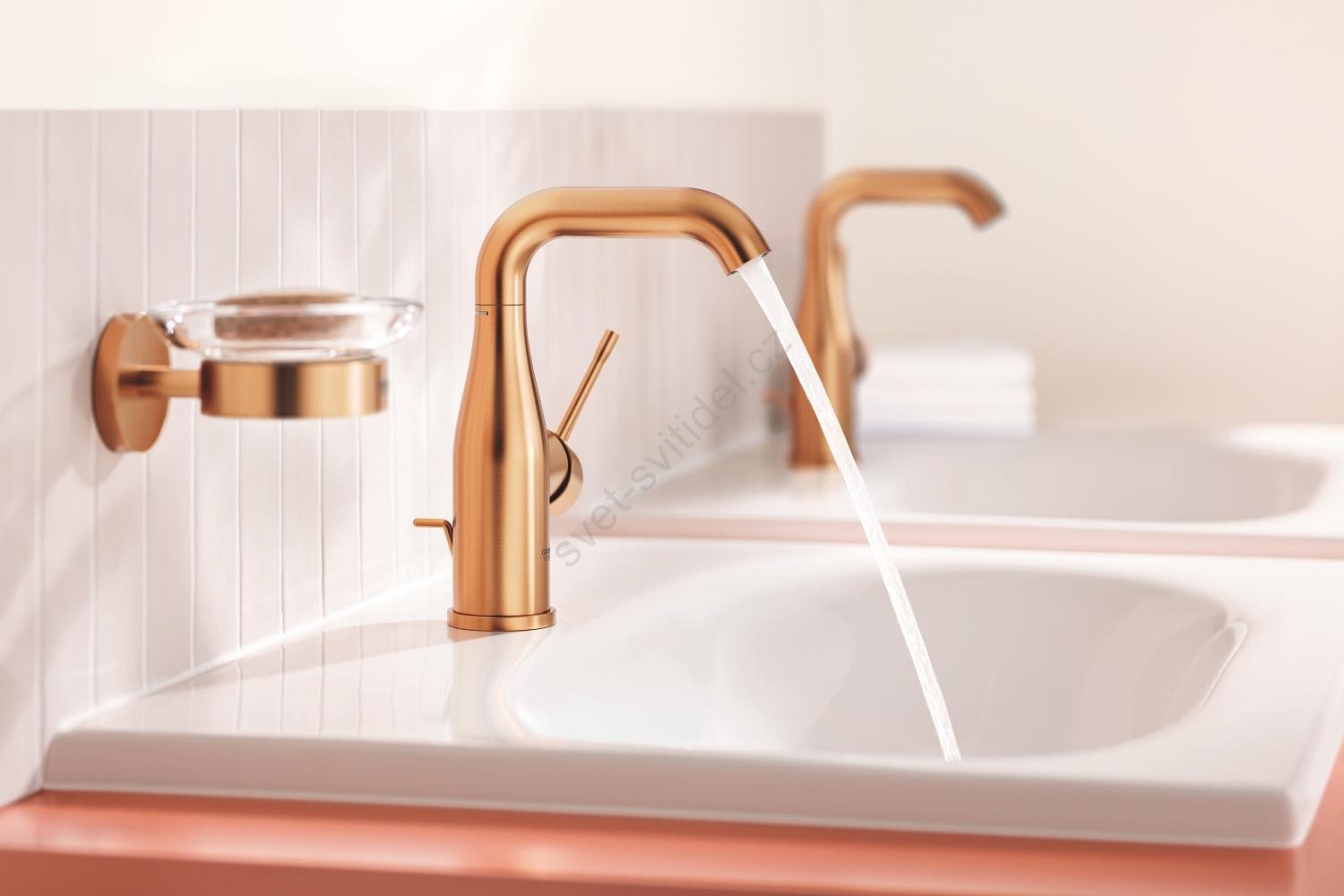 • Elegantní páková umyvadlová baterie GROHE Essence v provedení Brushed Warm Sunset.