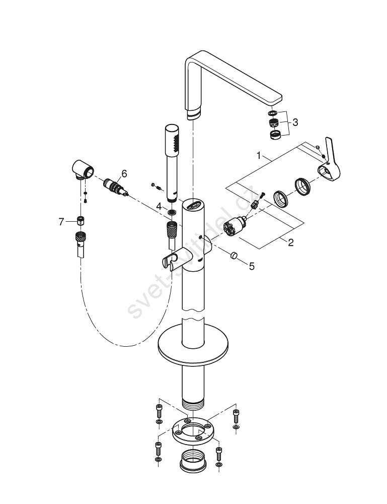 • Součástí je kovová tyčová ruční sprcha Sena s normálním proudem vody.