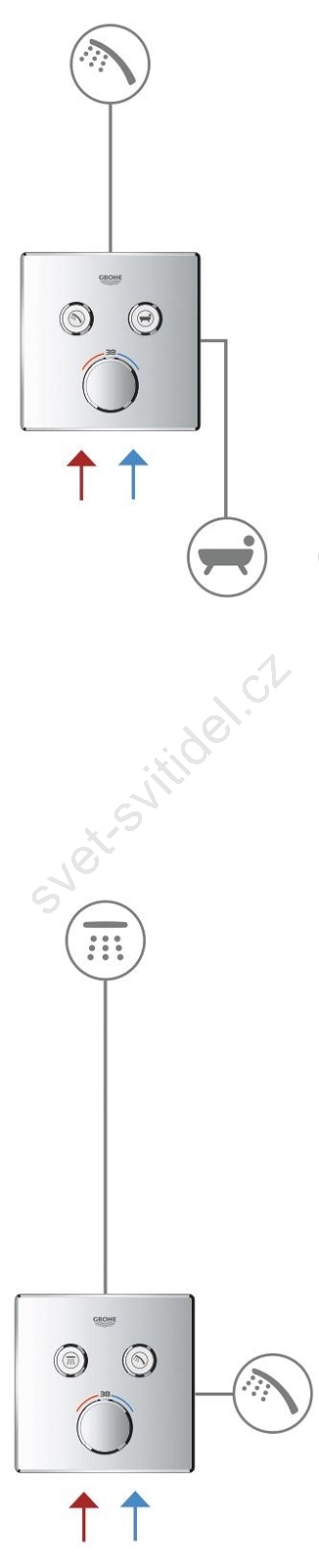 • Bez instalační sady; pro kompletní instalaci je nutné dokoupit podomítkový modul GROHE Rapido SmartBox (35 600/35 604).