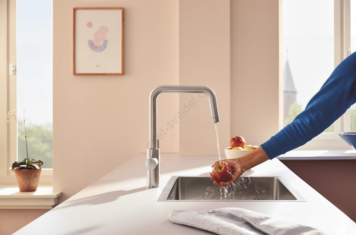 • Páková dřezová baterie GROHE Blue s integrovanou filtrační funkcí pro čistou a chutnou vodu.
