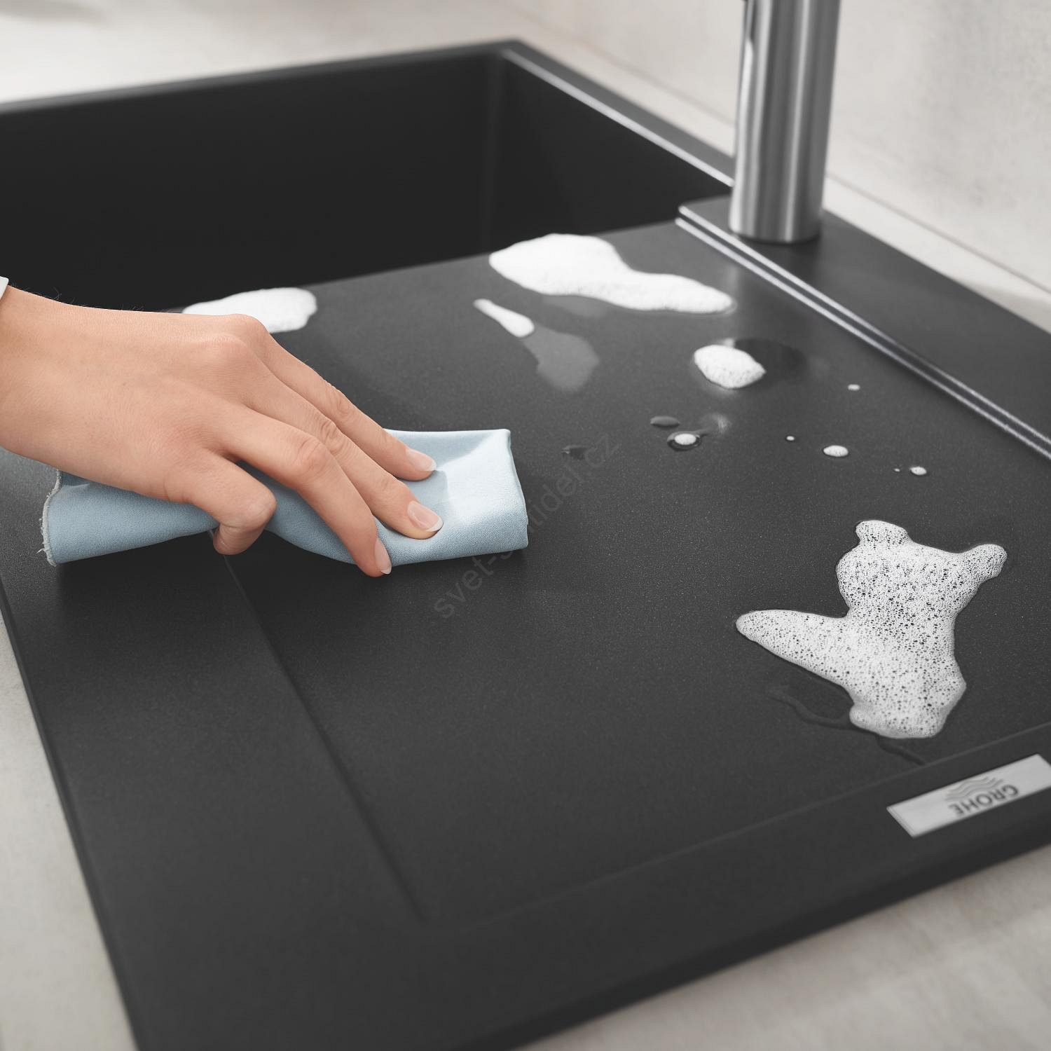 • Kompozitní dřez GROHE K500 s odkapávačem pro moderní kuchyně.