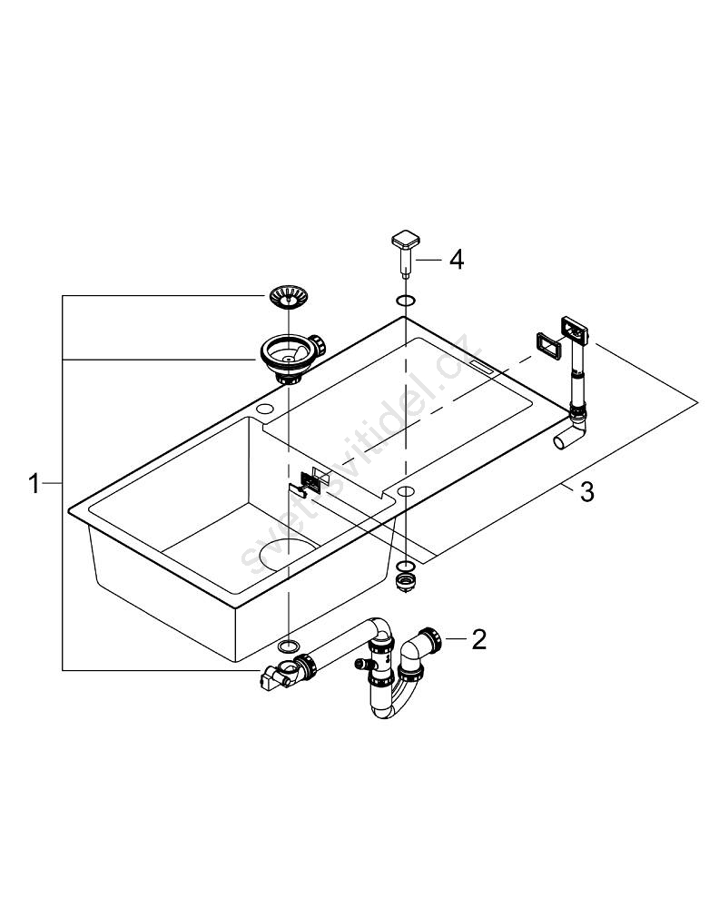 • Součástí balení: automatické upevnění odpadu, souprava na odpad, sítko na nečistoty a montážní set.