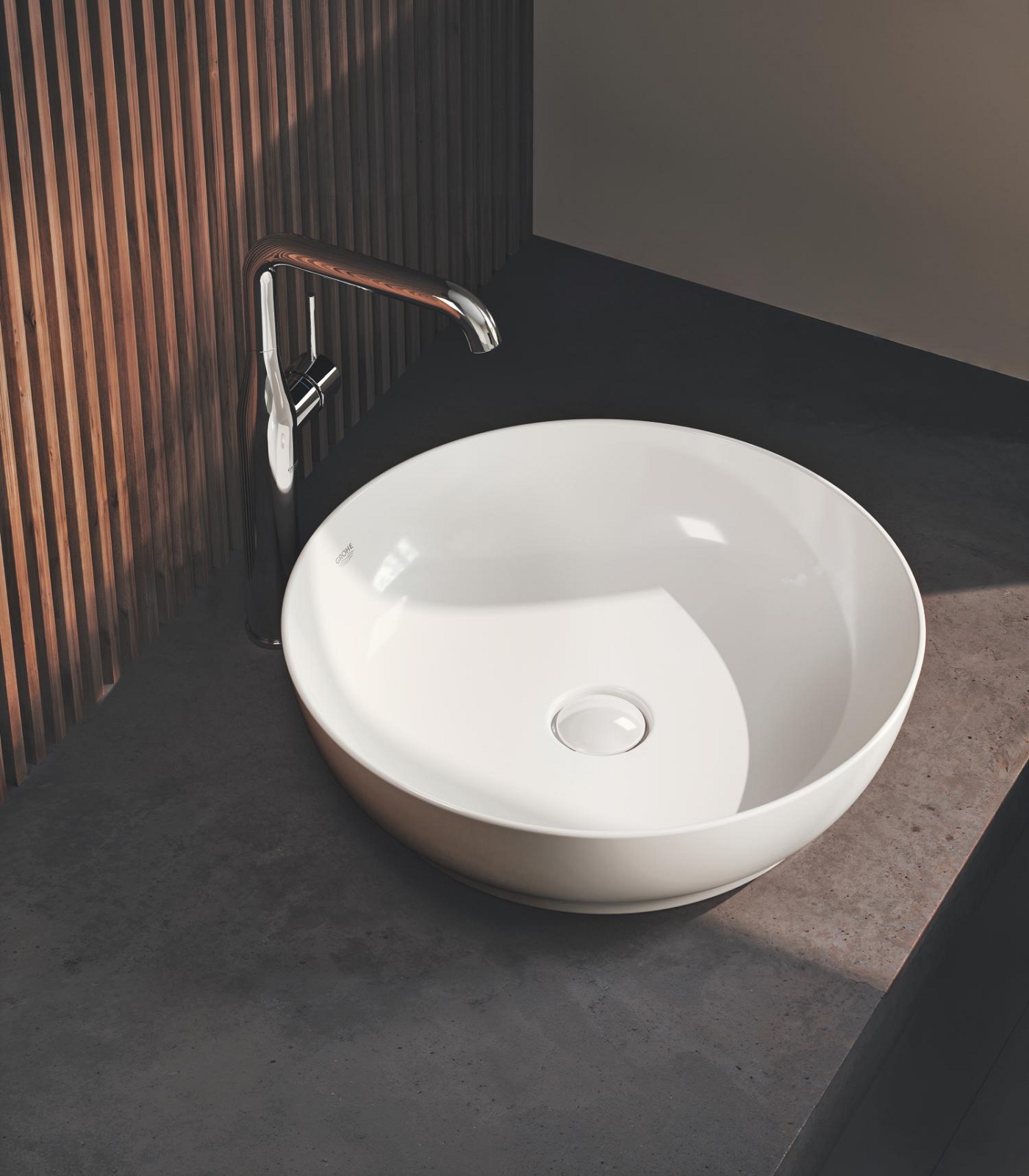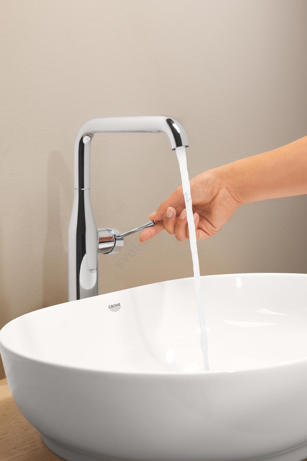 • Elegantní páková umyvadlová baterie GROHE Essence XL pro volně stojící umyvadla.