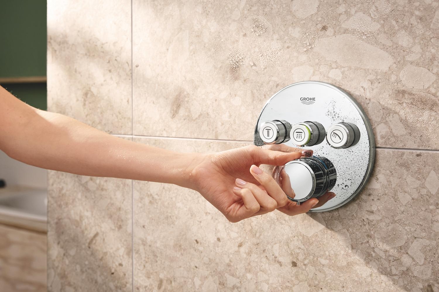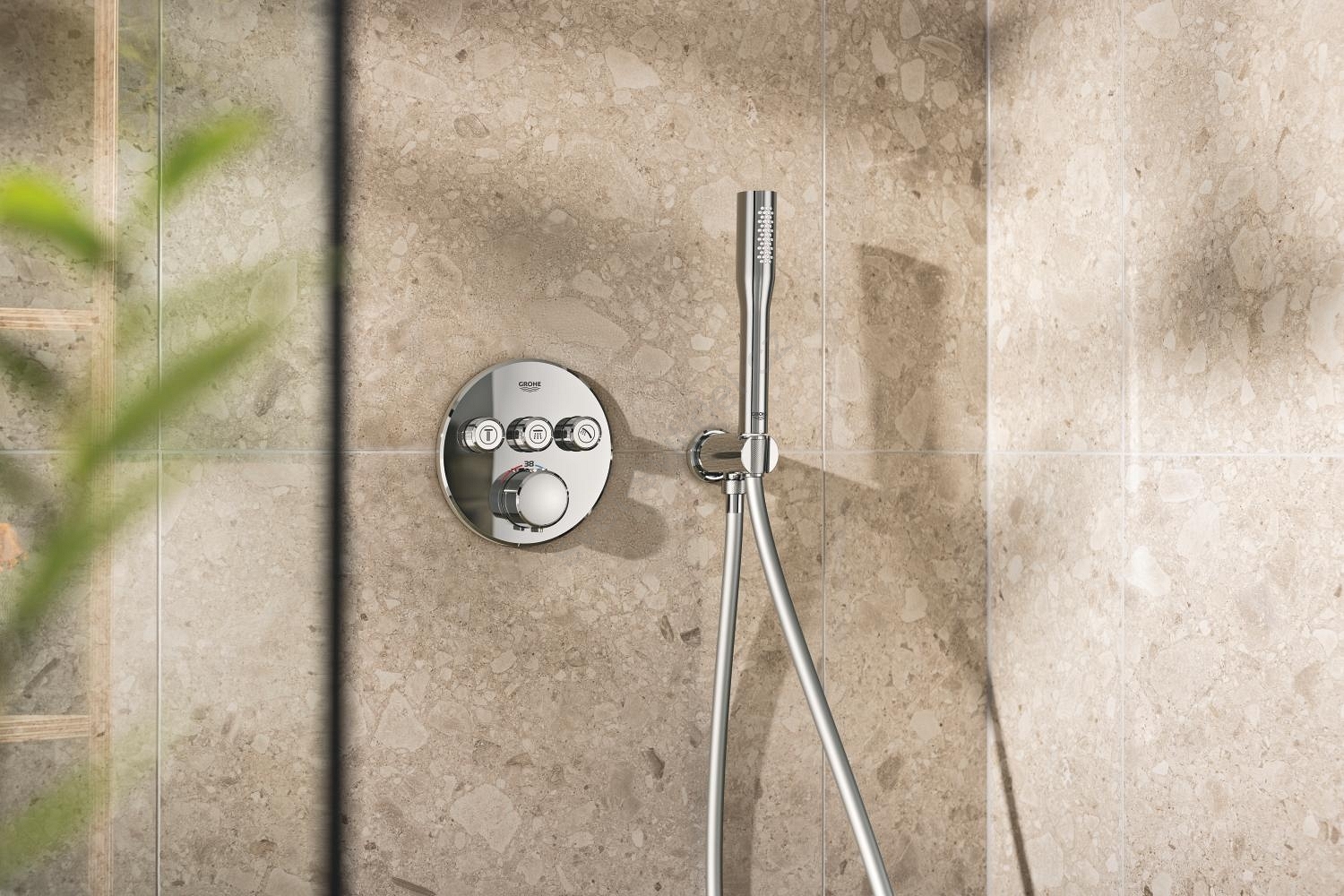 • Obsahuje podomítkovou termostatickou baterii se třemi ventily pro přesné ovládání teploty a průtoku vody.