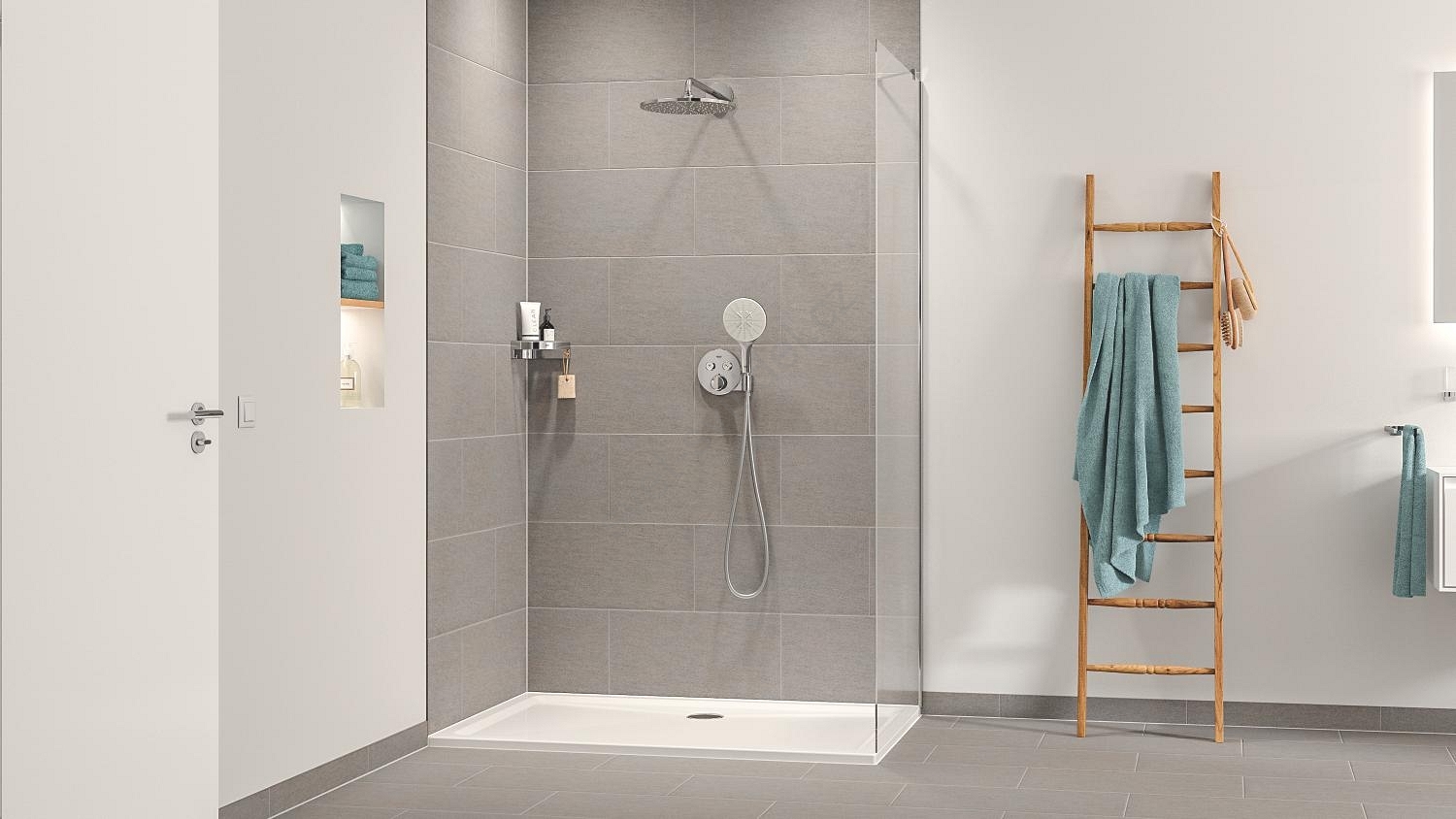 • Termostatická baterie Precision SmartControl s integrovaným držákem ruční sprchy.