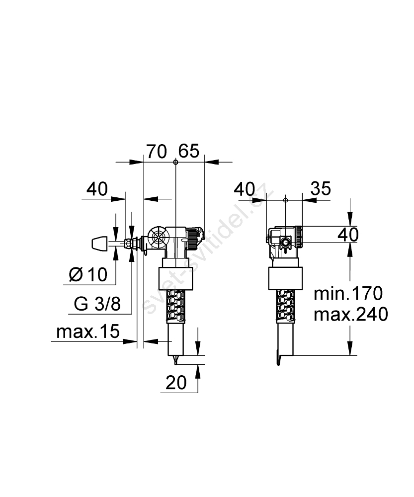 • Univerzální napouštěcí ventil vhodný pro vysoko i nízko zavěšené splachovací nádrže z plastu, keramiky nebo litiny.