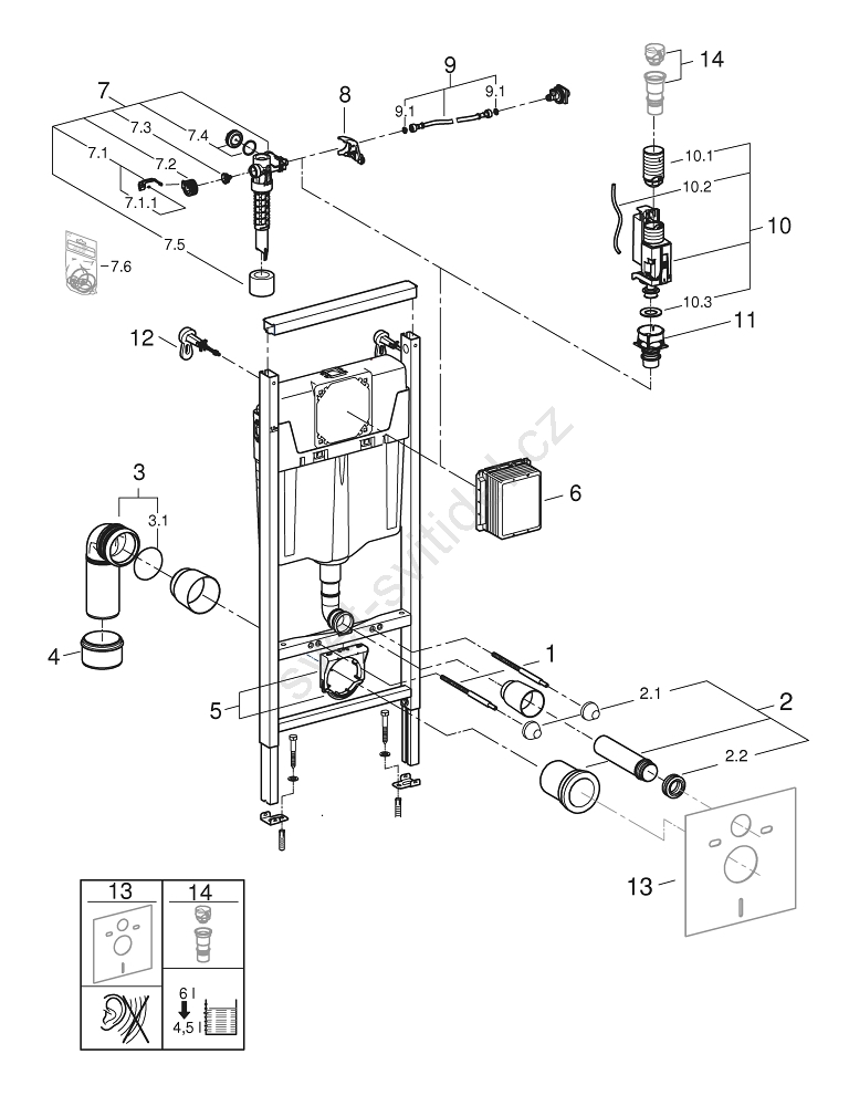 • Splachovací nádrž GD 2 s nastavitelným objemem 6–9 litrů pro úsporné splachování.