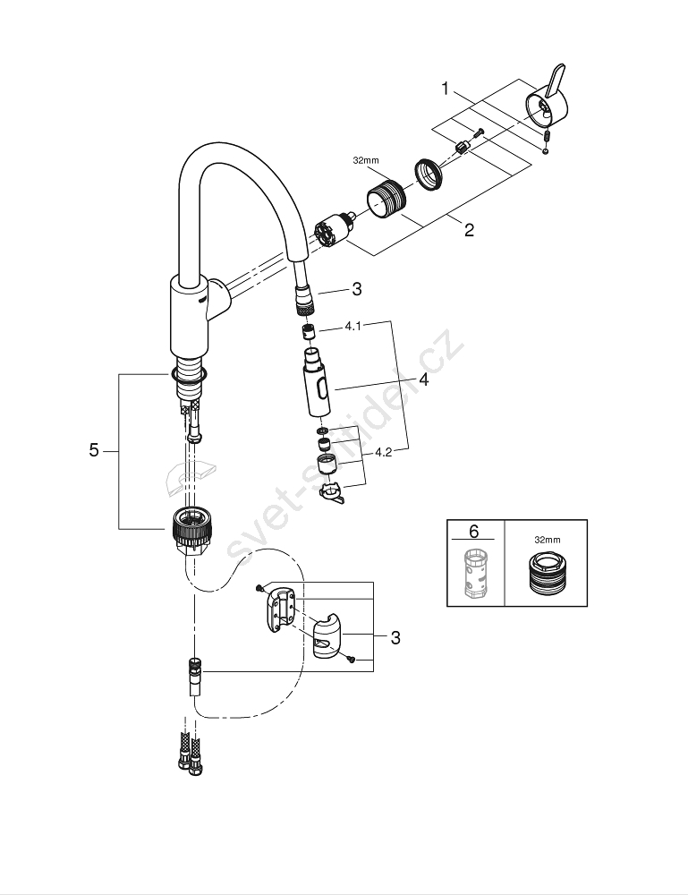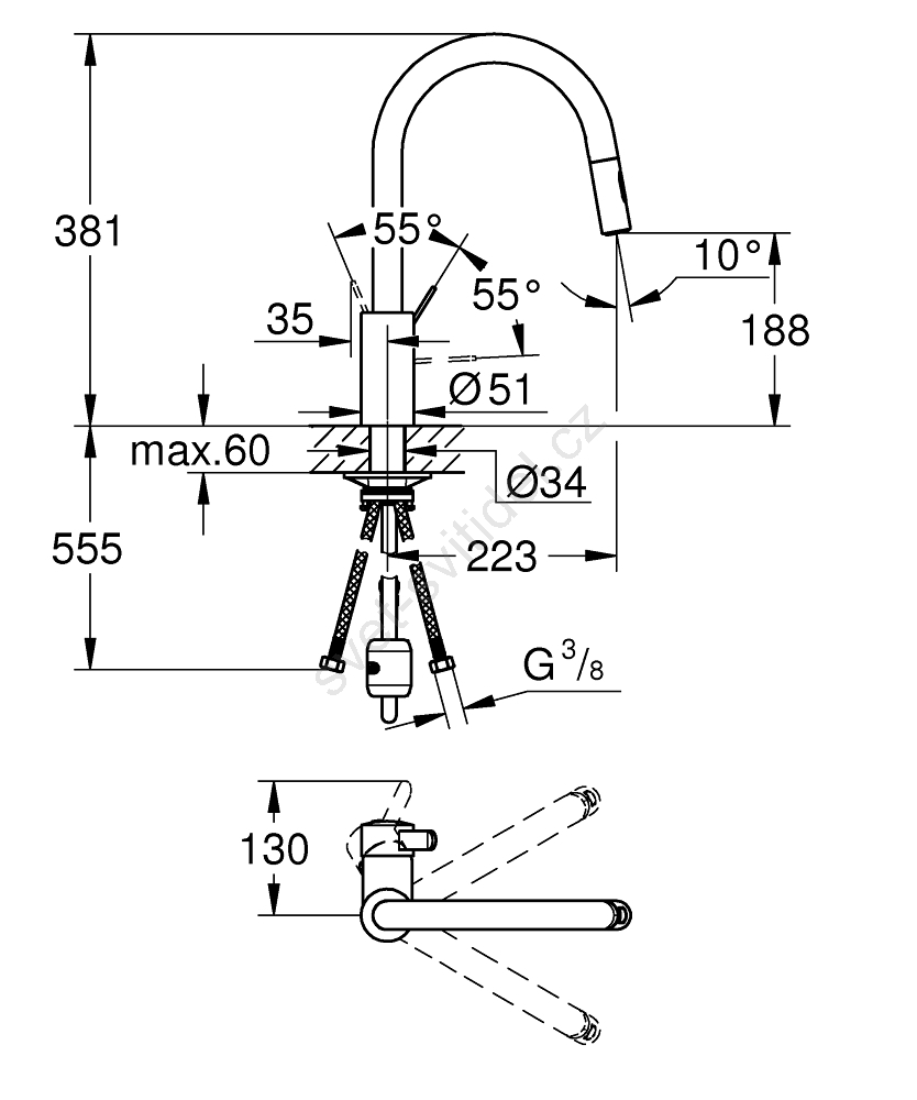 • Perlátor s technologií GROHE Úspora vody s průtokem pod 9 l/min.