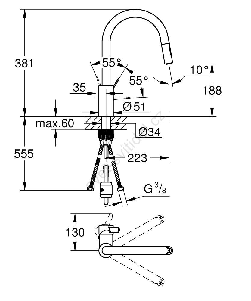 • Flexibilní připojovací hadice usnadňují instalaci.