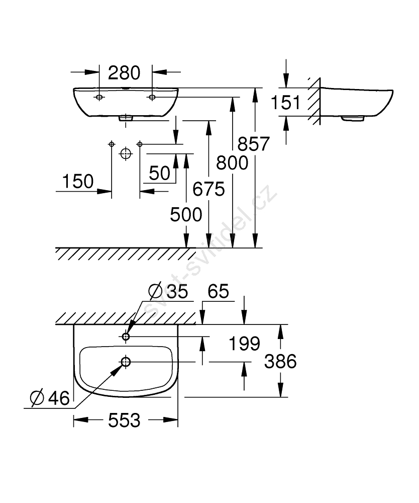 • Závěsné umyvadlo s nadčasovým minimalistickým designem.