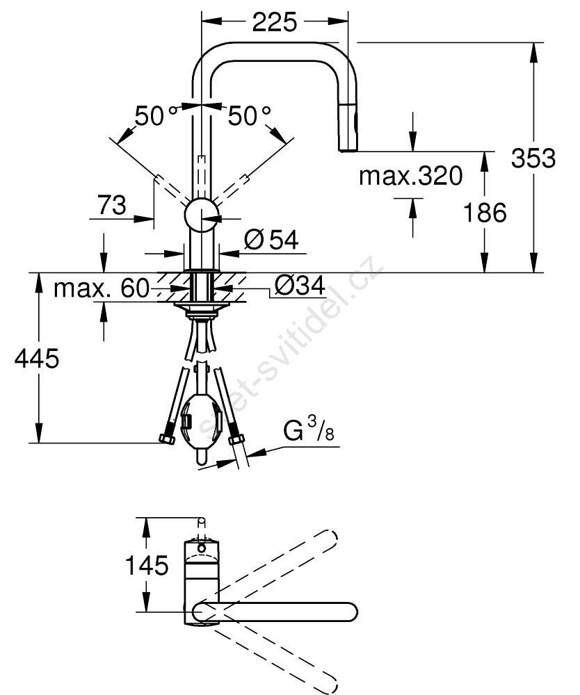 • Elegantní U-výpusť s otočným úhlem 360° pro maximální flexibilitu.