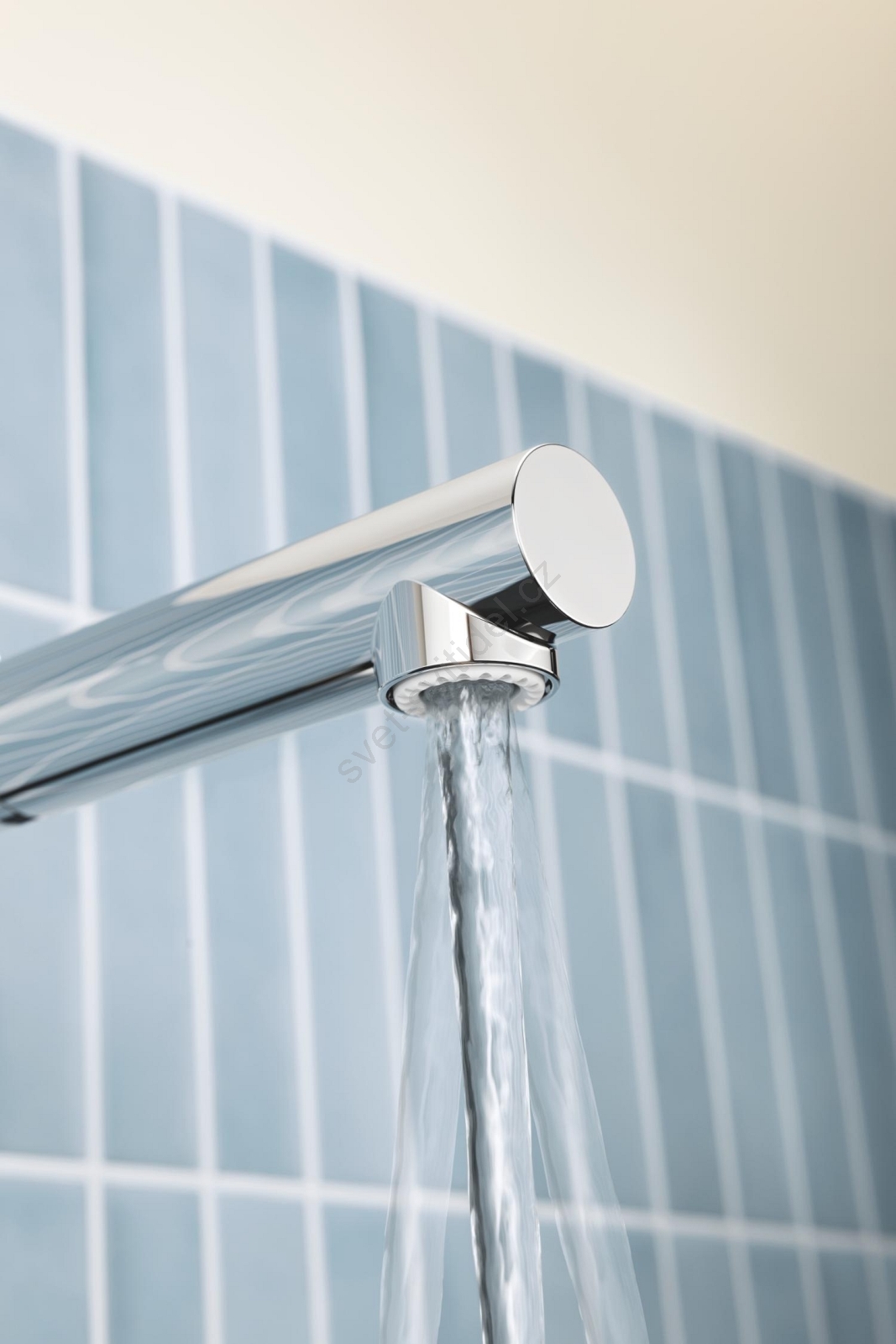 • GROHE AquaGuide nastavitelný perlátor umožňuje přizpůsobení úhlu proudu vody.
