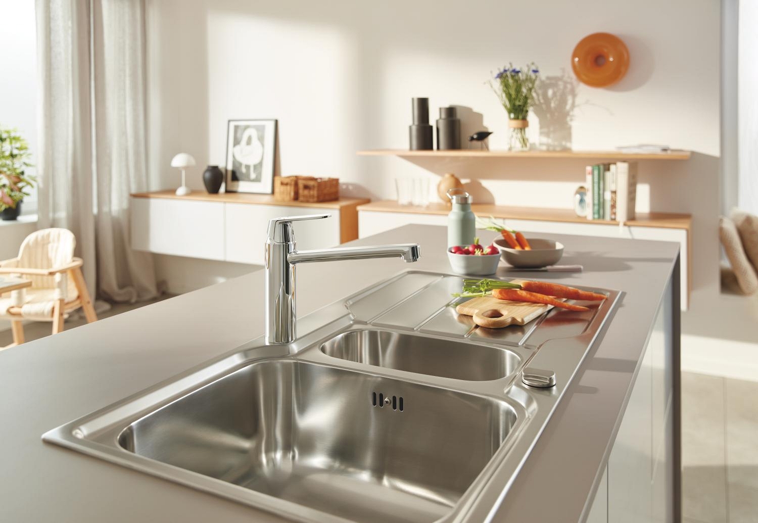 • Technologie GROHE Whisper minimalizuje hluk při používání dřezu pro tichý provoz.