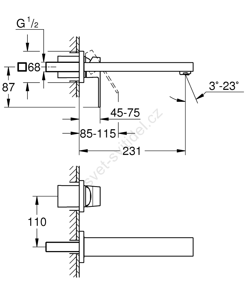 • Vzdálenost mezi středy otvorů 110 mm pro standardní instalaci.