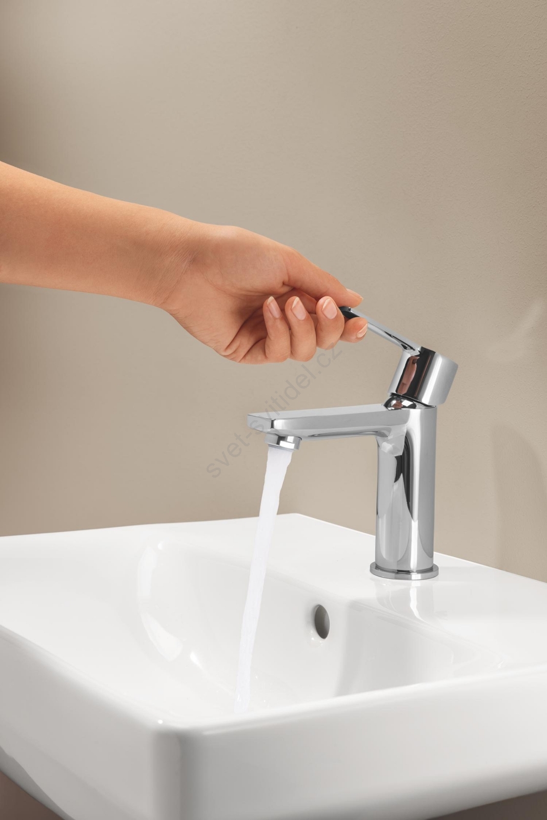 • Páková umyvadlová baterie GROHE Lineare s krátkou výpustí – elegance a úspora vody.