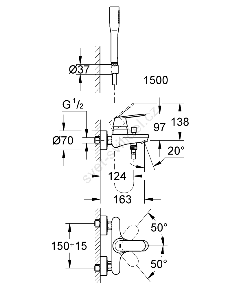 • Nástěnná páková vanová baterie pro snadnou instalaci.