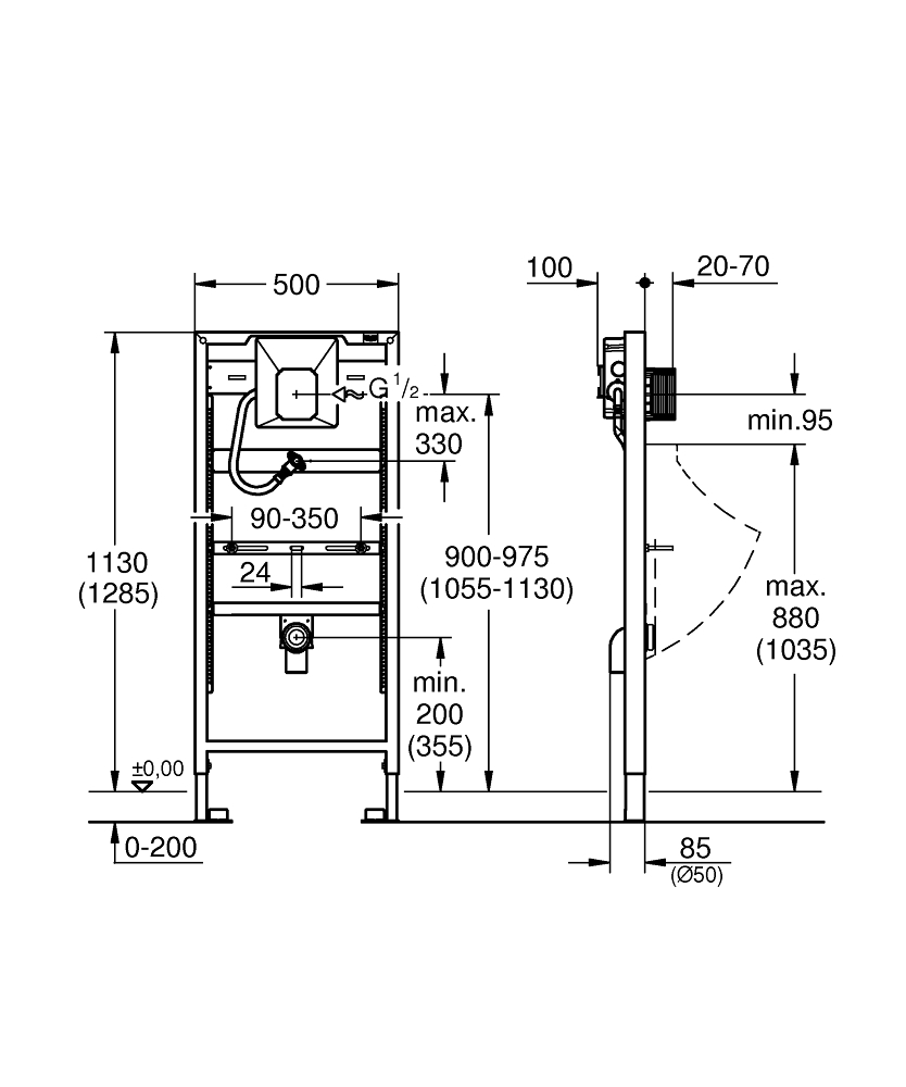GROHE 38786001 - Modul pro pisoár RAPID SL 1,13 m a 1,30 m