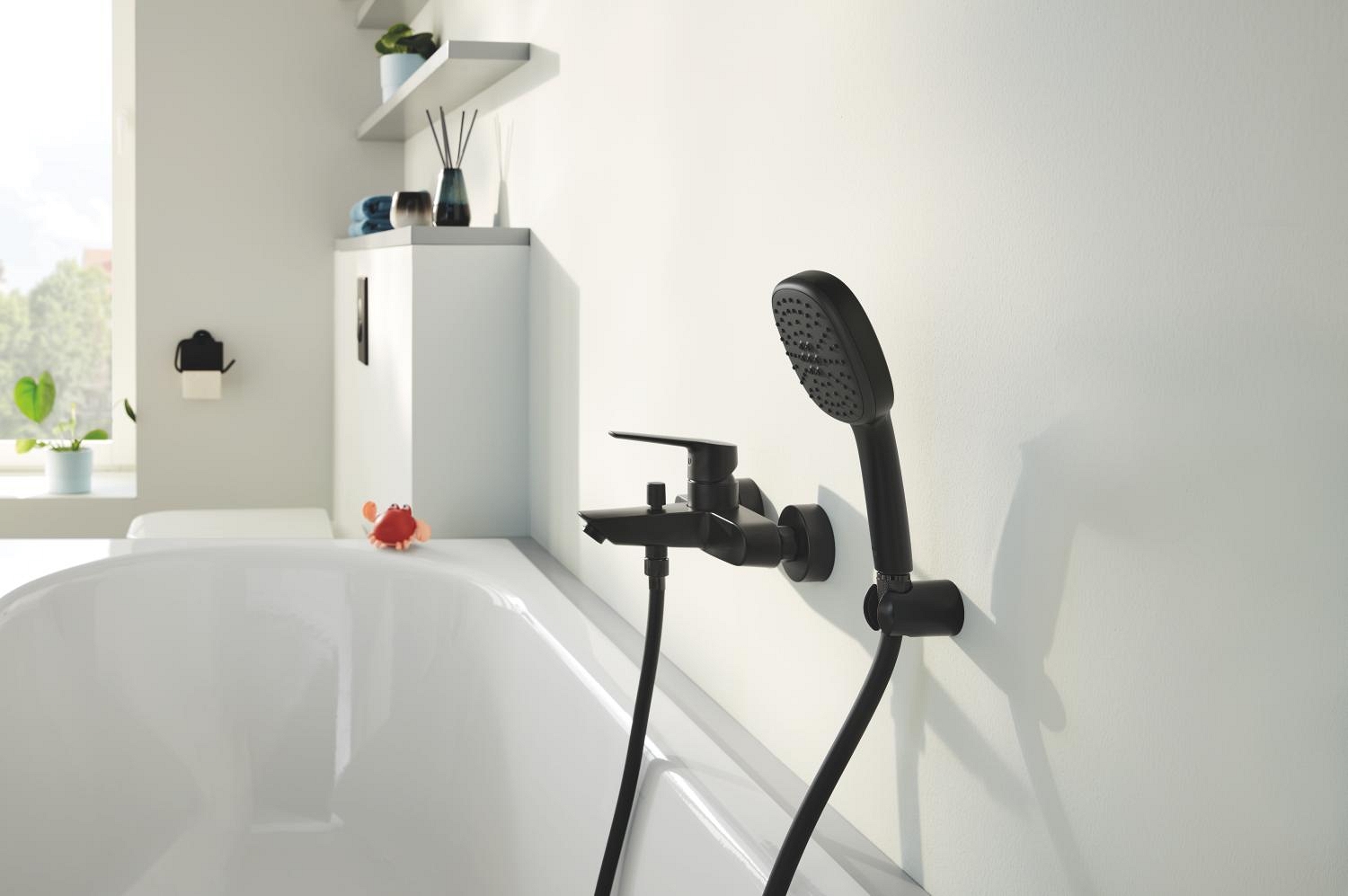 • Možnost montáže šroubováním (šrouby a hmoždinky v balení) nebo lepením (lepidlo GROHE QuickGlue S 41 247 000 se prodává samostatně).