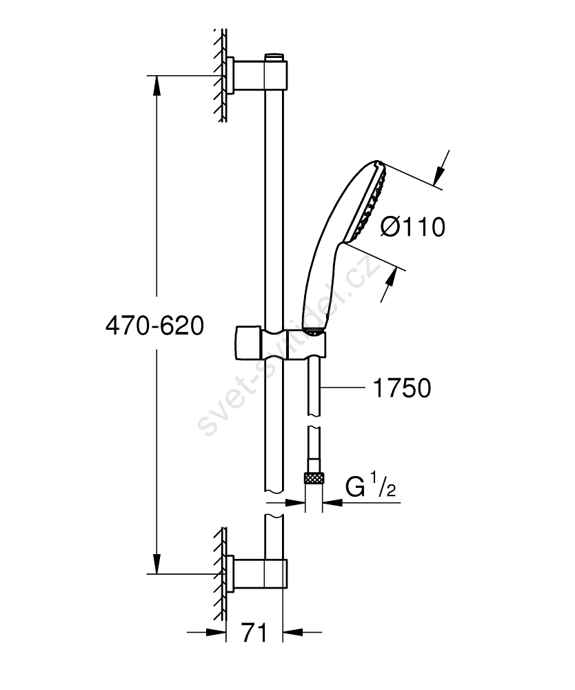 • Nastavitelný posuvný držák umožňuje pohodlné nastavení výšky sprchy.
