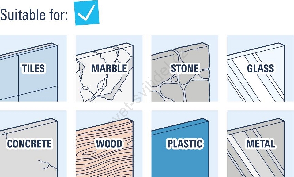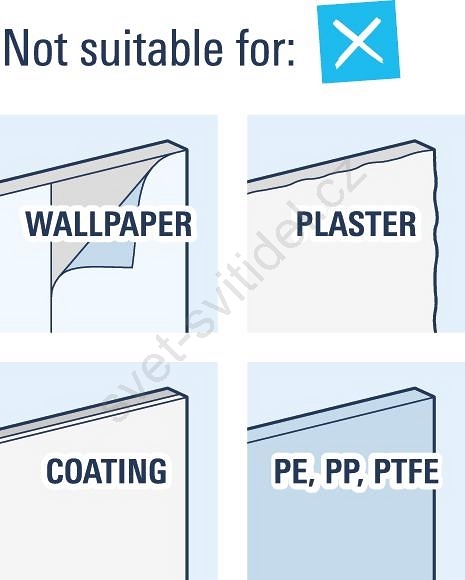 • Snadná instalace díky přiloženému montážnímu materiálu a možnosti lepení.
