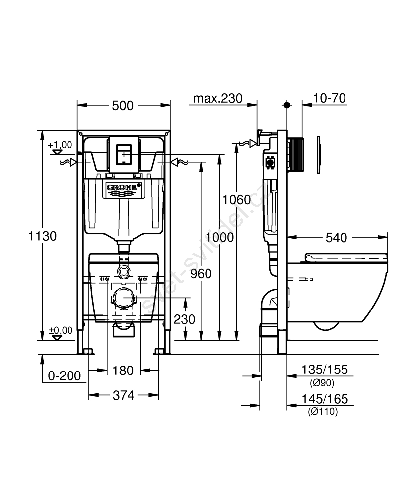 • Obsahuje instalační prvek Rapid SL pro WC (38 528 001) s výškou 1,13 m.