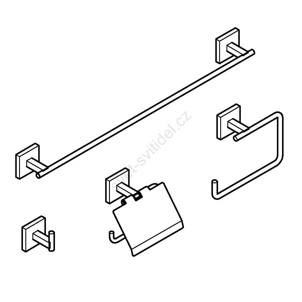 • Obsahuje držák na osušky (délka 558 mm), držák na ručníky, držák toaletního papíru s krytem a háček na koupací plášť.