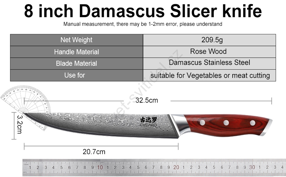 • Kuchyňský kuchařský nůž 8" (tloušťka 2,5 mm).