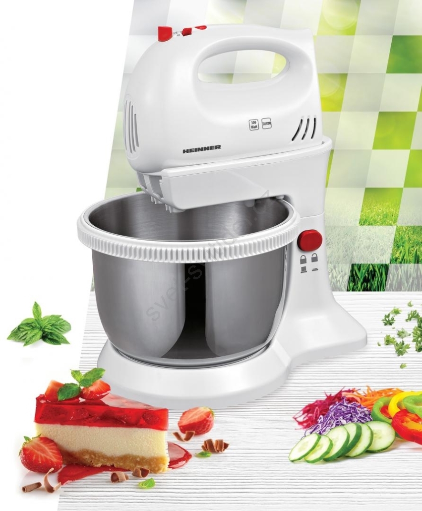 Heinner HMBR-300W - Ruční šlehač s otočnou mísou 300W/230V bílá
