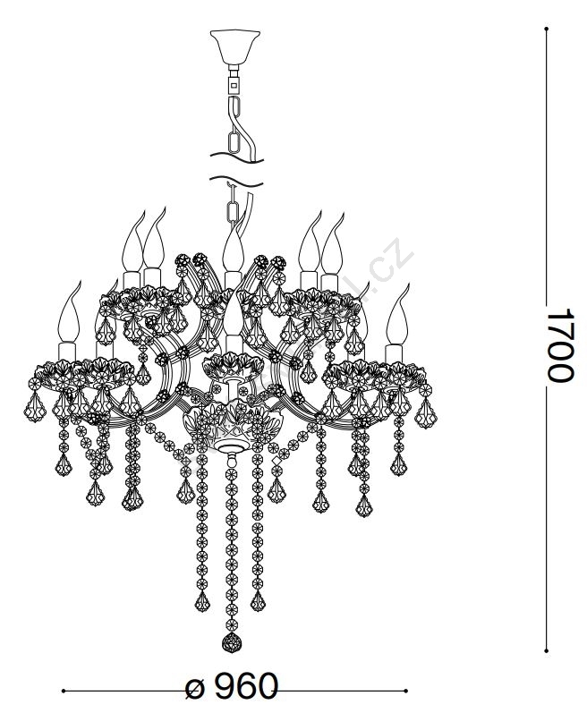 Tento křišťálový lustr je dodáván v rozloženém stavu. Sestavení a zavěšení křišťálů je nutné provést svépomocí.