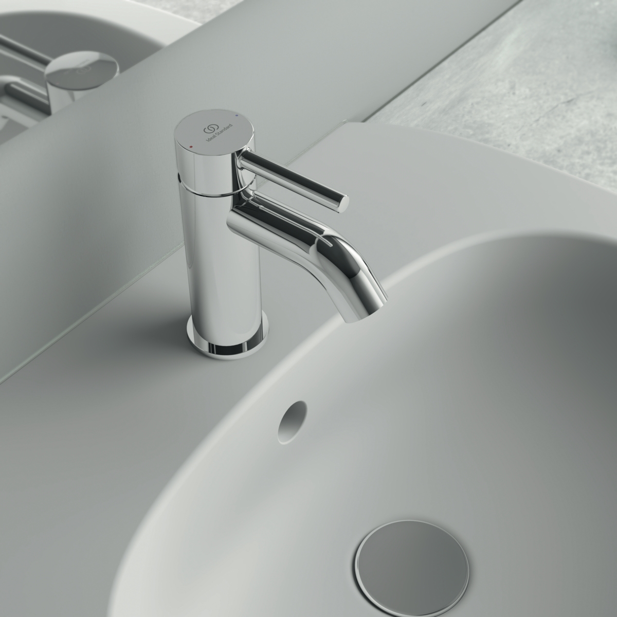 • Páková umyvadlová baterie Ideal Standard CeraLine je stojánkový model s netradičním designem.