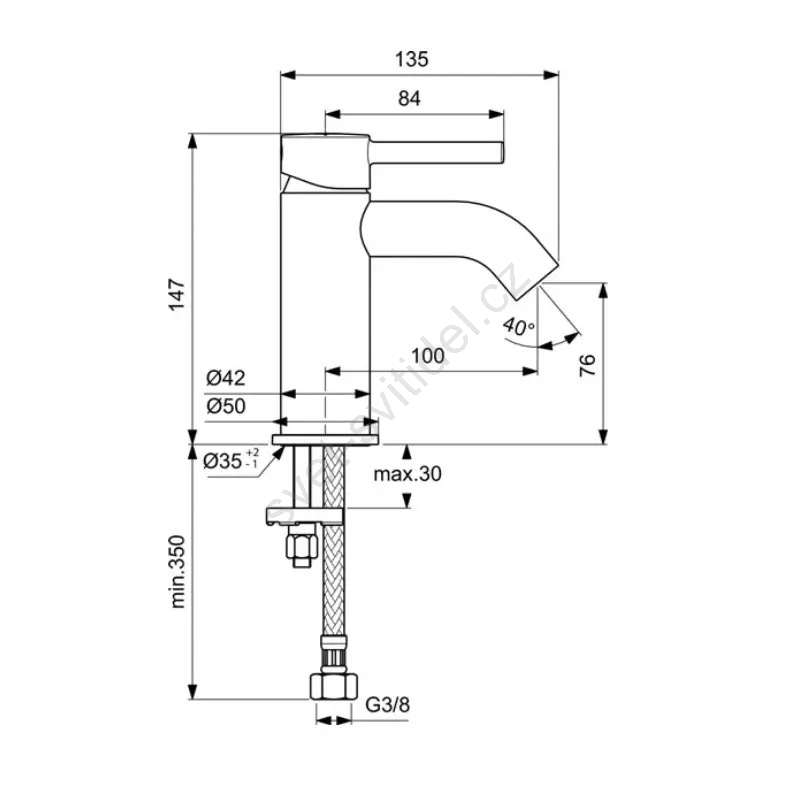 • K připojení slouží flexibilní hadice s rozměrem G 3/8".