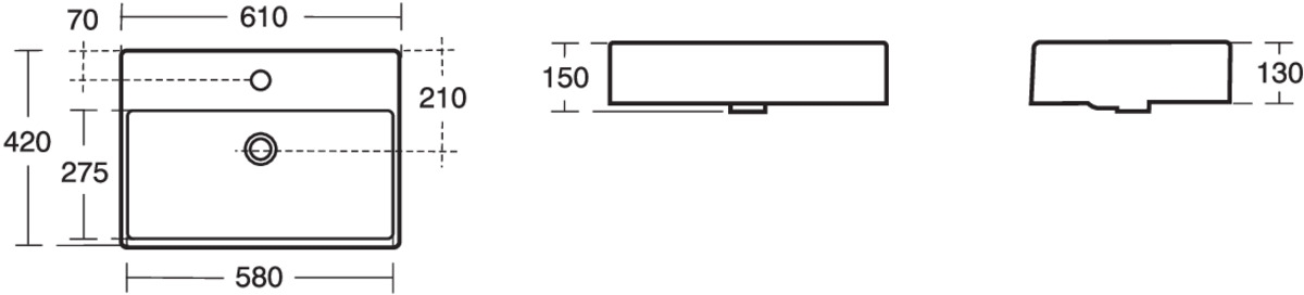 • Umyvadlo má jeden předpřipravený otvor pro montáž umyvadlové baterie.