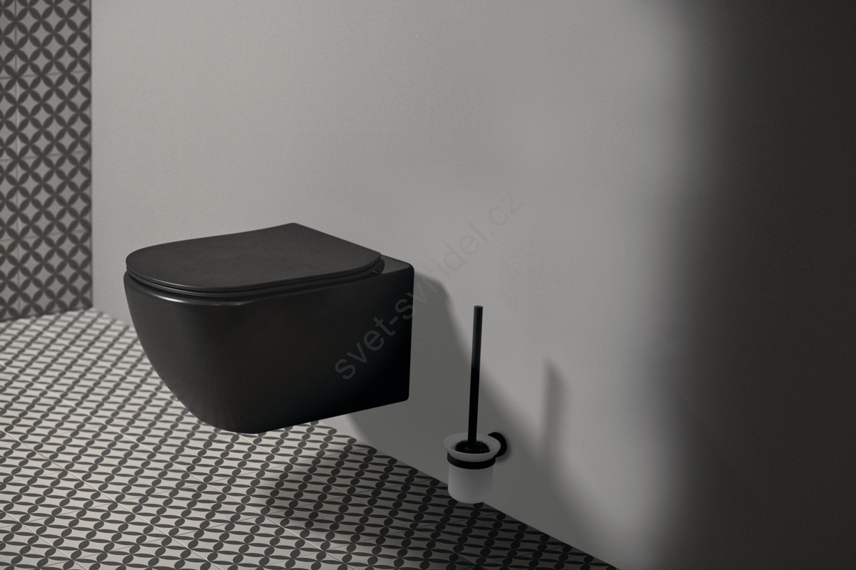 • Součástí setu je ultra ploché WC sedátko v hedvábně černé barvě, vybavené funkcí SoftClose pro tiché dovírání a systémem snadného odnímání pro pohodlné čištění.