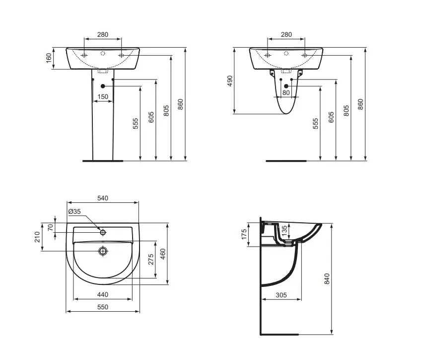 • Montuje se přímo na zeď a lze jej kombinovat se sloupem nebo polosloupem, čímž docílíte elegantního a čistého vzhledu koupelny.